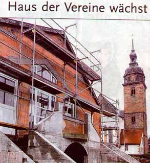 In Hainfeld macht das aus der Raiffeisenbank erwachsende Haus der Vereine Fortschritte. Wenn die Witterung keinen Streich spielt» soll dem mit über 600 000 Mark veranschlagten Bauprojekt in den nächsten Tagen das Dach aufgesetzt werden. Sein Domizil dort beziehen wird ab Sommer auch Ortsbürgermeister Horst Schmid. —foto: van |